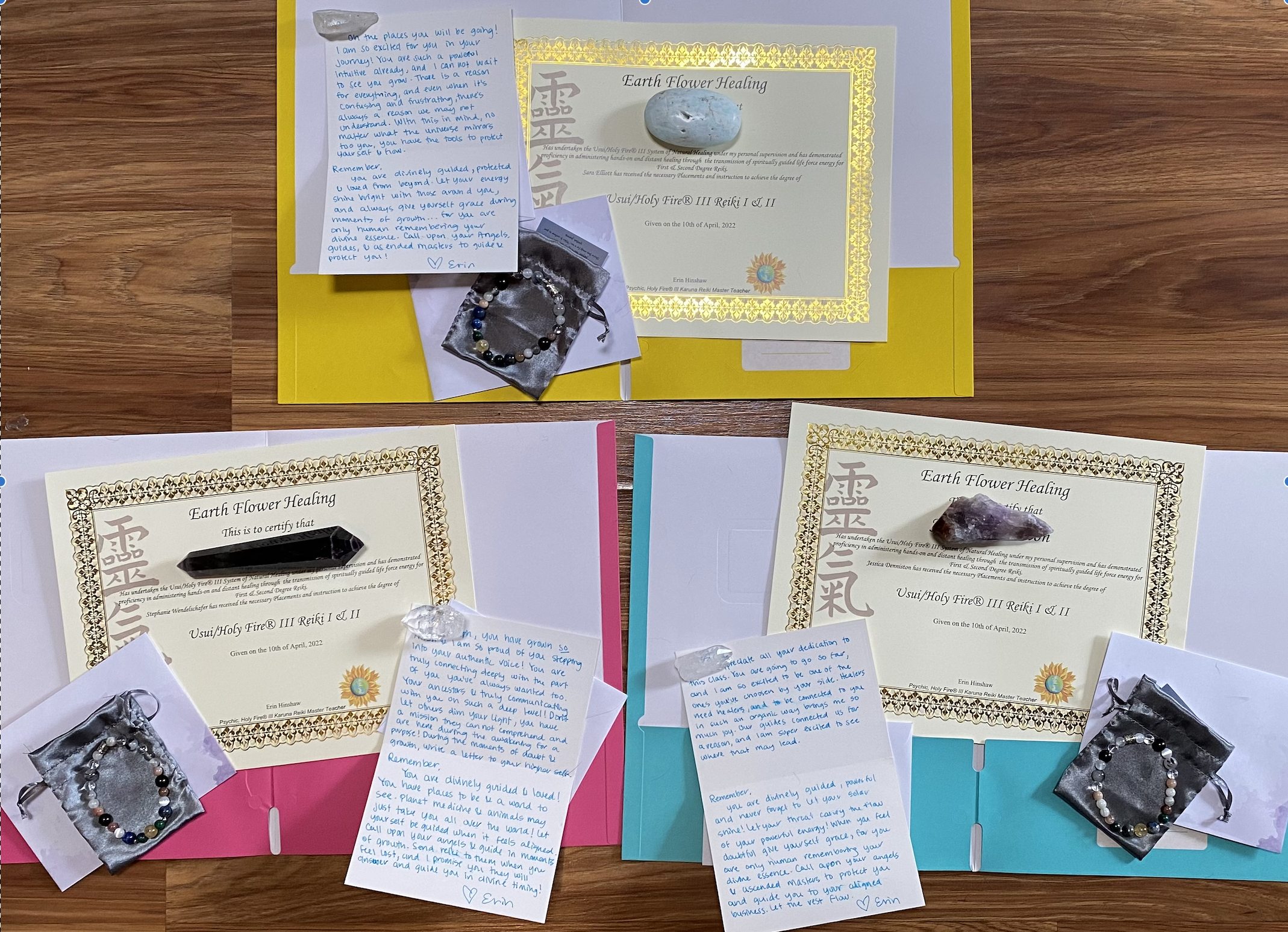 “Erin I am truly grateful to have you in my life. I couldn’t ask for a better teacher! Thank you for your honesty, integrity, and for being YOU! Learning the intuitive tools by running my energy helped bring a profound connection to myself, and understanding we are all connected. A universal tool to support and get to know my authentic self. This has allowed me to truly understand what being in my own space truly feels like. Developing these skills by learning how to hold space for others and learn to turn on my teacher lens, especially when the client might be resisting movement of energy and knowing how to support them. I felt the biggest shift when taking on my own clients during the Reiki Master portion of training, and being supported while in the container when things would come up during my own sessions outside of the training.”