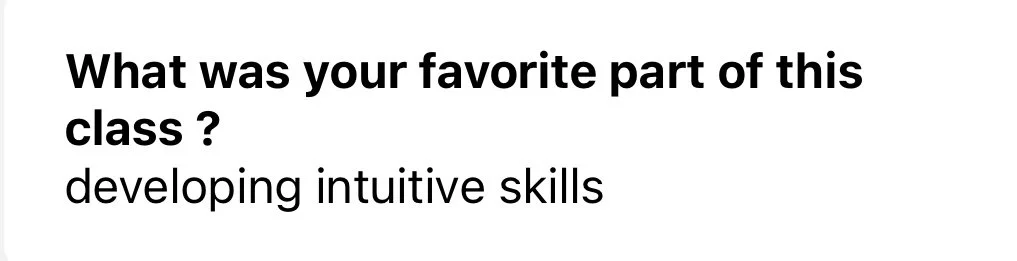 “This experience was awesome! I learned more about Reiki and felt a lot of personal shifts with my everyday life. My heart chakra was the most felt through this class. Connecting with my Reiki Master, my group and through using the symbols. Sparks of joy and happiness while I was giving and receiving Reiki. Overall, great class! Lots of laughing and discussion. I love that we can access worksheets and information of what we learned online whenever we need it!”
